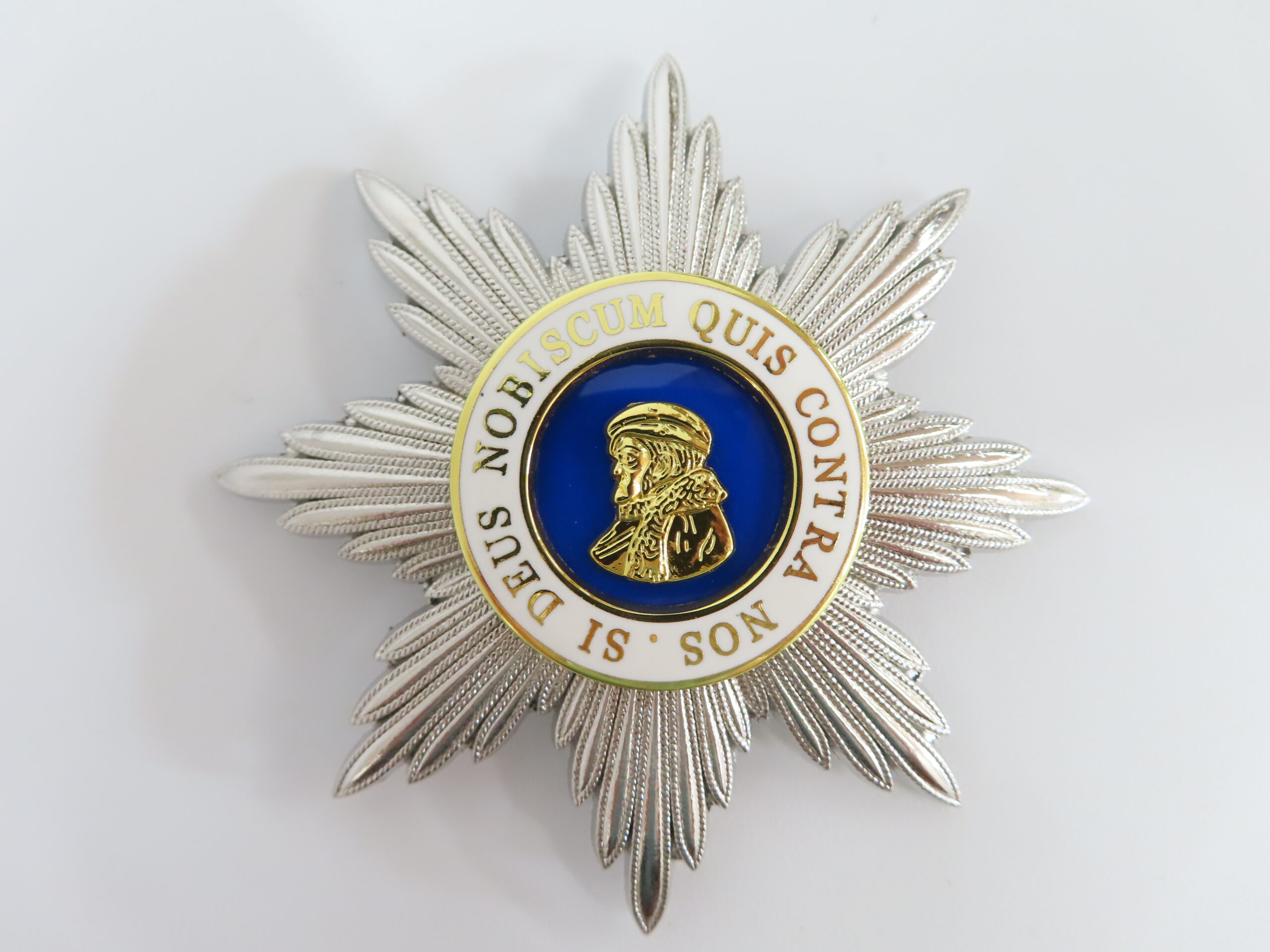 Silver starburst, blue center with a gold portrait of Landgrave Philip I