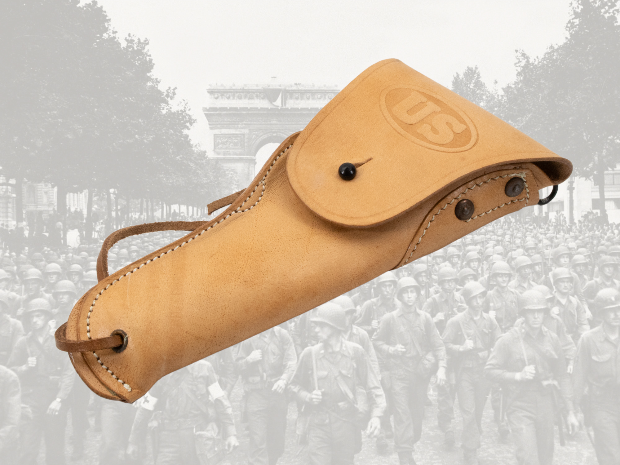 Leather holster for the Colt M1911 and M1911A1 pistols, worn on the right hip