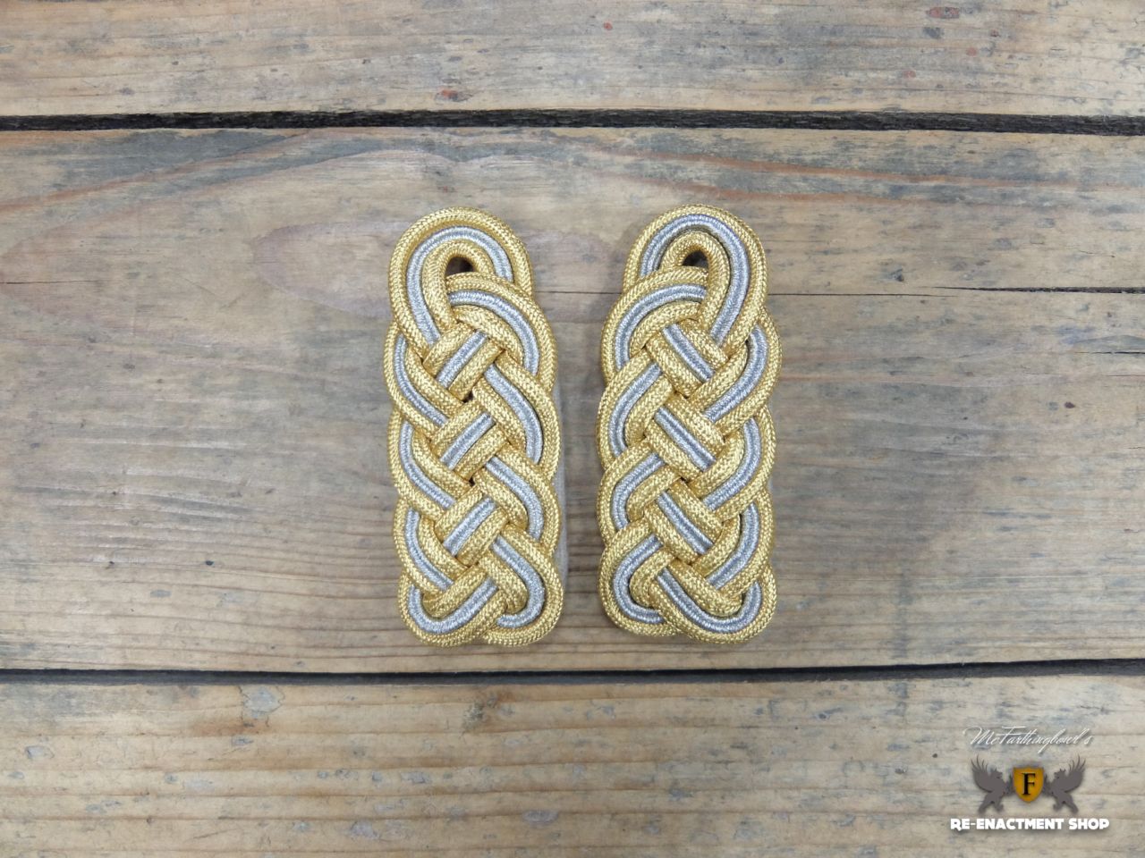 Gold and silver on grey woolen background