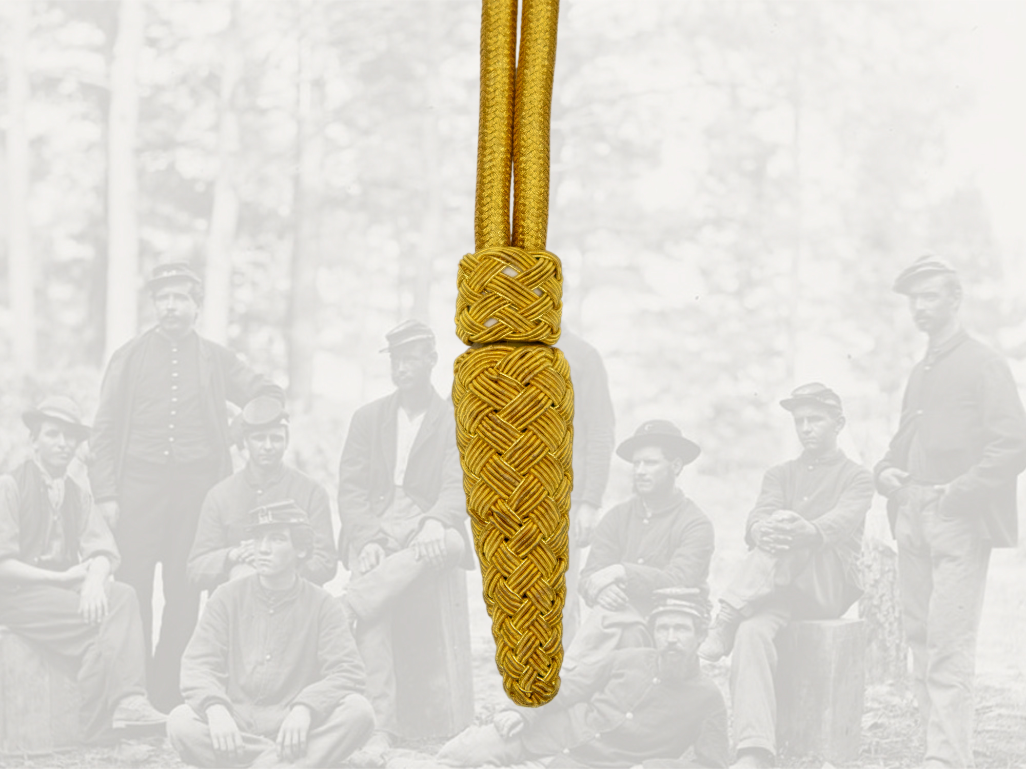 American Civil War style general line officer sword knot: gold round cord with long acorn tassel and sliding keeper